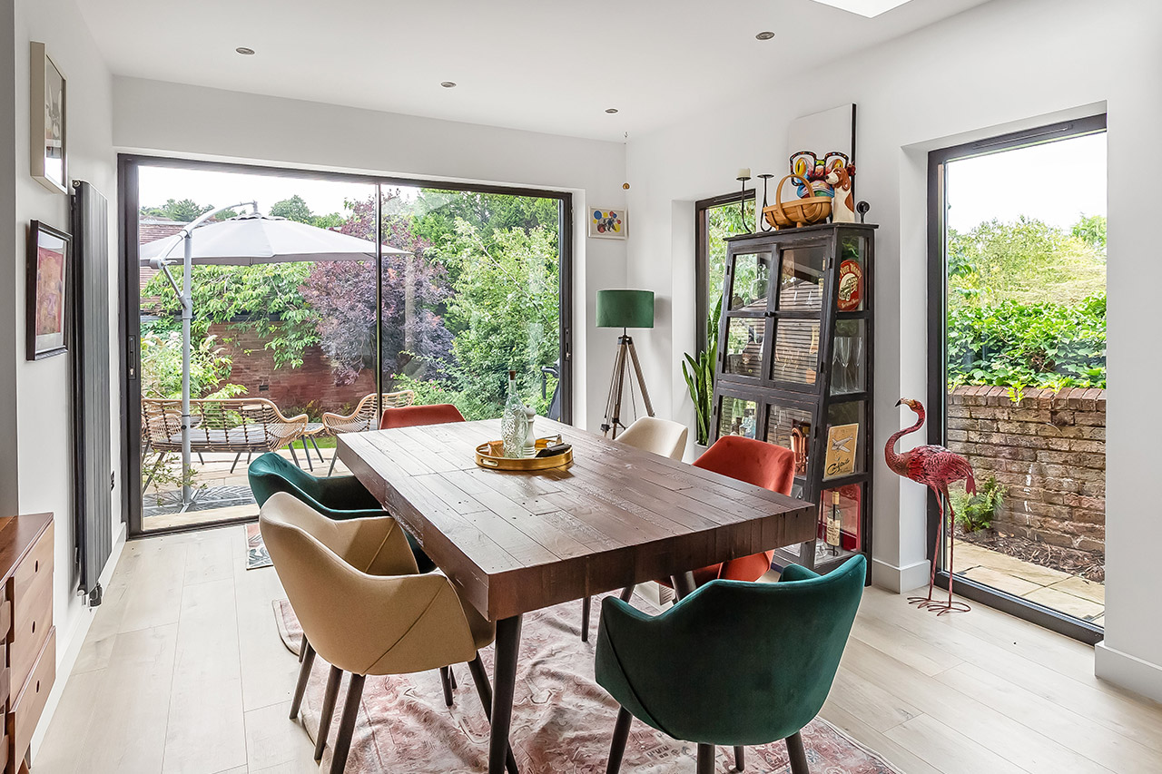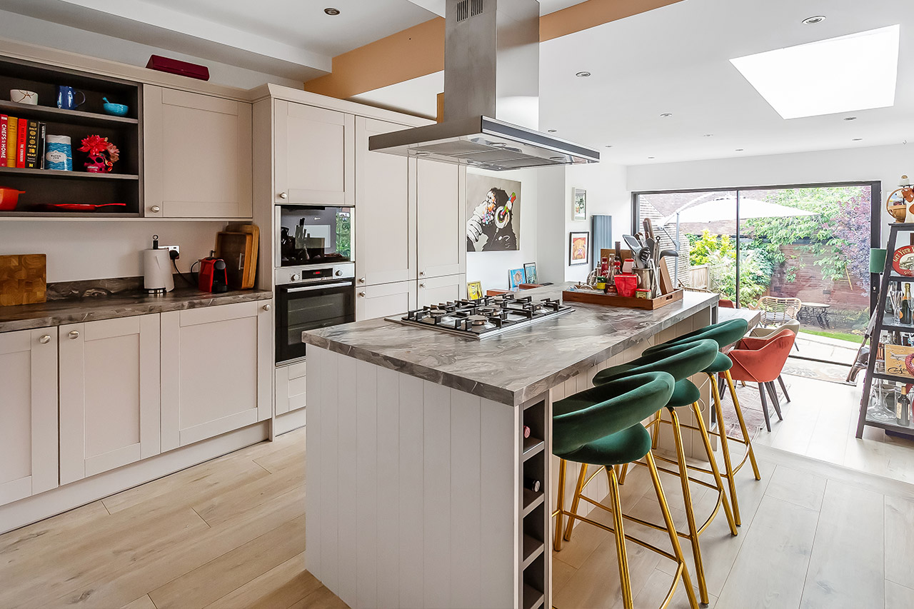 The resulting scheme is a light filled, family friendly entertaining space which connects to the garden.