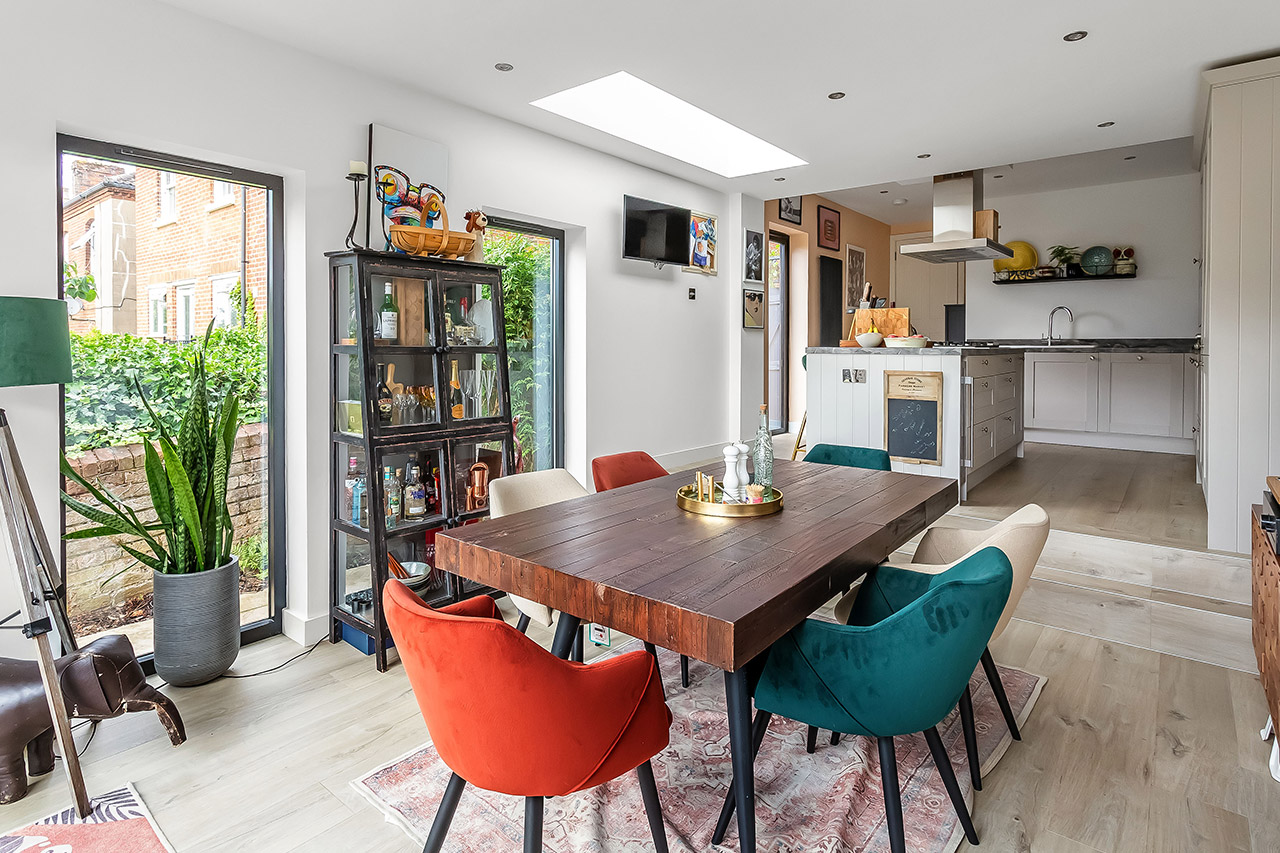Our clients came to us with a brief to create a spacious, light filled family kitchen dining space, and the all important ground floor toilet. As with many semi-detached Victorian homes, the footprint of the ground floor is long and narrow, with limited opportunities for light and views to the rear garden.